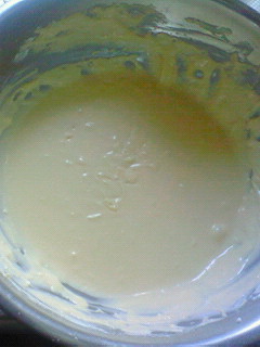 混ぜたクリームチーズの中に卵白を3回くらいに分けていれます。