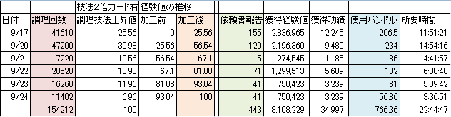 ・ 生産、技法2倍カード使用