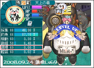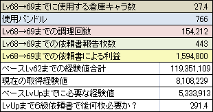 上のデータ画像でLv68→69までの生産にかかる所要時間は