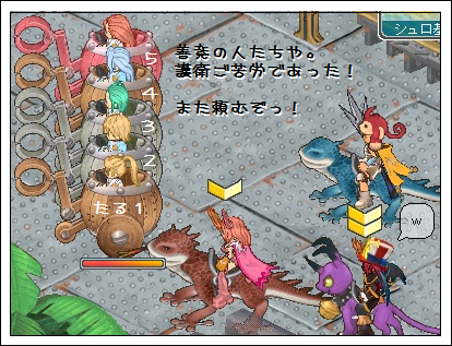 速度Up乗り物が間に入ると、樽連結が切れちゃうので