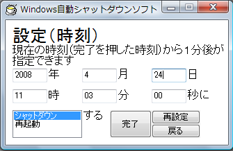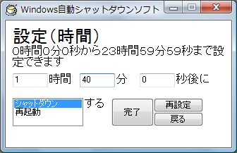 時間を設定して、完了をぽちっと。後は最小化しておけば邪魔になりません。